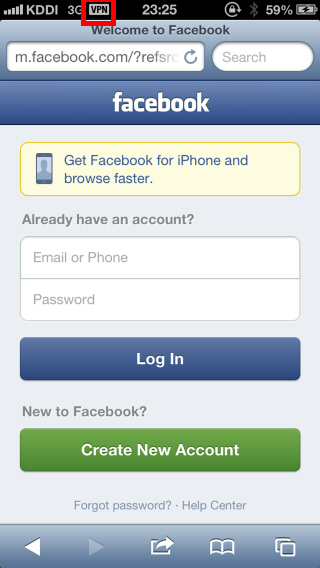 また、VPN 接続中は iOS の画面のトップに「VPN」と表示されます。