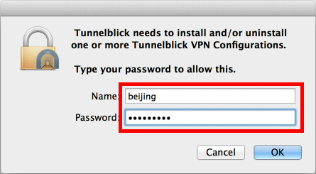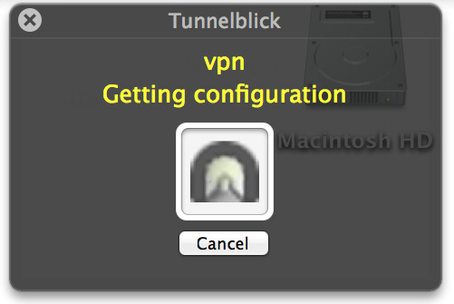 上記の操作により、Tunnelblick に OpenVPN の接続設定ファイル (.ovpn ファイル) がインポートされました。